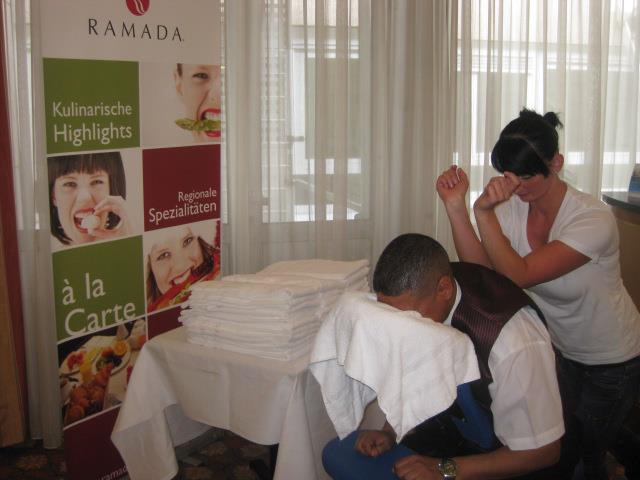 UnserEvent-Massage-Team sorgt mit seiner freundlichen kompetenten Art dafür, dass Ihre Teilnehmer entspannt und fröhlich sind.